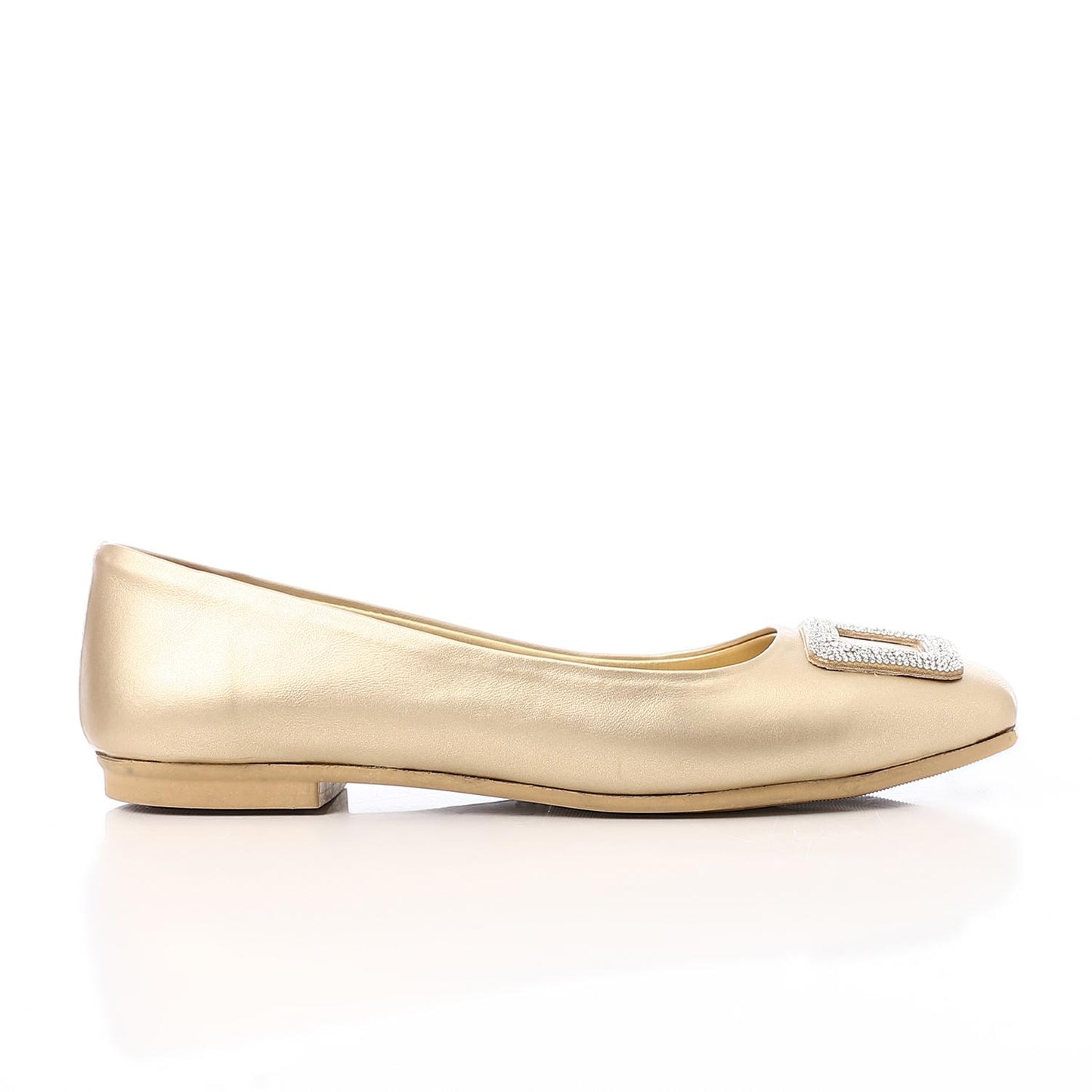 - Key Features: Rhinestone buckle detail, shiny metallic finish, modern square toe, comfortable flat sole.