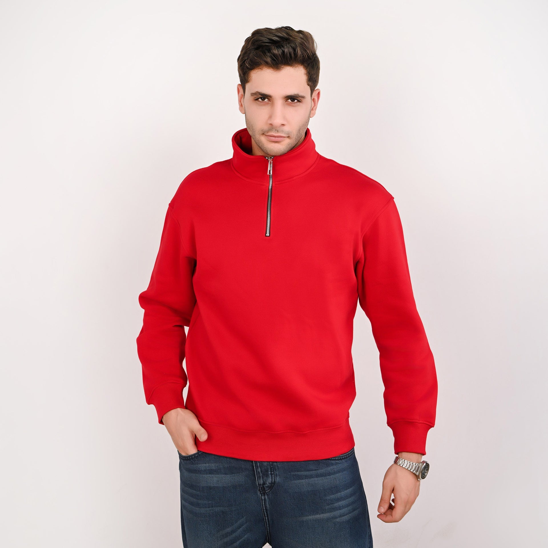 Minimal Quarter-Zip Sweatshirt – Red